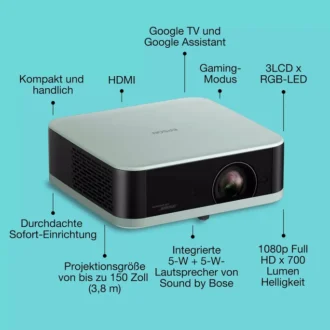 Ursprünglicher Preis war: 770,00 €577,50 €Aktueller Preis ist: 577,50 €.Save 192,50 €Epson EF-61G Lifestudio Pop Mini-Laserprojektor 700 Lumen FHD HDMI Grün