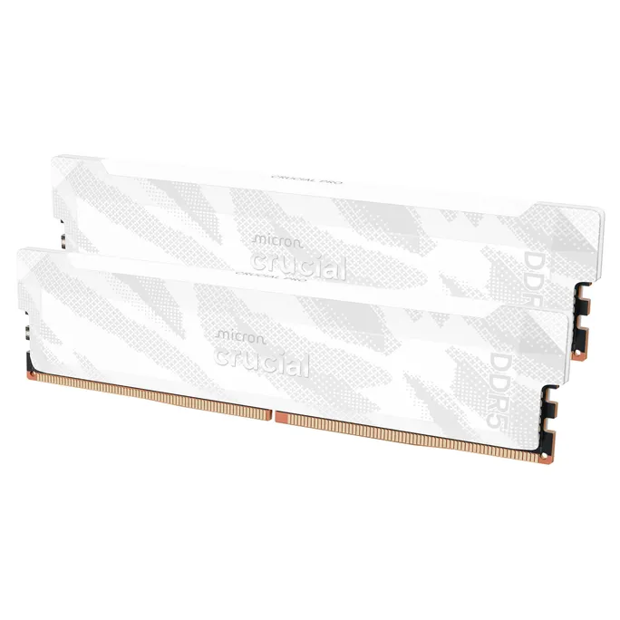 Crucial Pro Overclocking 32GB Kit (16GBx2) DDR5-6400 UDIMM WeißCrucial DDR5 Pro Speicher verfügt über eine beeindruckende Geschwindigkeit und enorme Bandbreite, wie sie zur Unterstützung von Multi-Core-CPUs der nächsten Generation erforderlich sind. Darüber hinaus entfällt der Zwang, sich mit Übertakten, Latenzoptimierung, der Jagd nach Dies und LEDs auseinandersetzen zu müssen.DDR5 Pro Speicher zum ÜbertaktenBringen Sie die Leistung auf die nächste Stufe mit der enormen Geschwindigkeit und Bandbreite von Crucial® DDR5 Pro Speicher: Overclocking Edition. Mobilisieren Sie die Leistung niedriger Latenz, um noch schneller zu werden und den nächsten Sieg zu sichern, anstatt sich über Leistungsengpässe zu ärgern. Unser leistungsstarker DDR5 Pro Speicher zum Übertakten unterstützt Multi-Core-CPUs der nächsten Generation sowie Intel® XMP 3.0 und AMD EXPO™1 auf jedem Modul.Cooles Look-and-FeelUnser DDR5 Pro Speicher zum Übertakten verfügt über einen Kühlkörper und sein Design ist an die Origami-Kunst angelehnt – für eine coole Haptik und einen ästhetischen Gewinn für jeden Rig.Beschleunigte LeistungNiedrigere LatenzHöhere Bildraten pro SekundeReibungsloseres GamingIdeal für AAA-Spiele.Kompatibilität