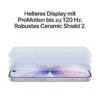 • Helleres Display mit ProMotion bis zu 120 Hz. Robuster Ceramic Shield 2 auf der Vorderseite mit 3x besserer Kratzfestigkeit.1