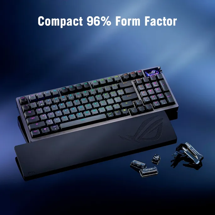 - Kompakter 96 % Formfaktor: Das Layout des ROG Azoth 96 HE bietet eine ausgewogene Mischung aus Effizienz und Funktionalität. Sie ist nur einen Zentimeter breiter als eine herkömmliche TKL-Tastatur (Tenkeyless) und bietet einen vollständigen Ziffernblock und Funktionen wie Bildschirm drucken, Bildschirmsperre, Home und Ende, sodass sie sich sowohl für die Arbeit als auch für die Freizeit eignet.