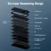 - Dichtungshalterung und sechslagiges Dämpfungsdesign: Gepolstertes Tippgefühl durch vier PORON® Schichten, ein IXPE-Polster und ein Silikonpolster, das Vibrationen und Schaltgeräusche absorbiert; die Weichheit der Dichtung kann durch Auswechseln des darunter liegenden Dämpfungsschaums angepasst werden