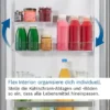 Eine ungleichmäßige Kühlung im Kühlschrank kann den Geschmack und die Haltbarkeit der Lebensmittel stark beeinträchtigen. Dank der Silber-Metallic Rückwand mit Multi Airflow werden Feuchtigkeit und Temperatur gleichmäßig über den gesamten Kühlbereich verteilt, von den Türabstellern bis zu den hinteren Ecken, wodurch deine Lebensmittel länger ihre Frische behalten.