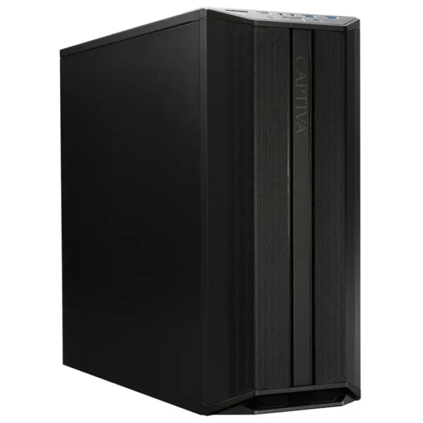 Das schwarze Tower-Design der Captiva Workstation ist platzsparend mit einer Breite von 185 mm, einer Höhe von 421 mm und einer Tiefe von 462 mm. Mit einer Leistung von 450 W ist die Workstation nicht nur leistungsstark, sondern auch energieeffizient.