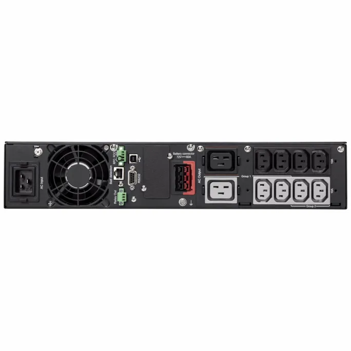 Automatische Spannungsregelung (Automatic Voltage Regulation/AVR)|Energieeffizienz, Reduzierung von Energie- und Kühlkosten|Reiner Sinusausgang|Bietet mehr Wirkleistung (Watt) zum Schutz von mehr Geräten mit einem Unity-Leistungsfaktor (VA=W)|LCD-Display für Echtzeitdaten zu Status und Messwerten|Lange Backup-Zeit mit bis zu 4 optionalen EBMs|Energieverbrauchsmessung bis hinunter zu den steuerbaren Ausgangsgruppen|Vielseitiges Produkt für Rack- oder Tower-Installation|1 Steckplatz für optionale Kommunikationskarte (Netzwerkmanagementkarte, Relaiskarte oder Netzwerk- und Industriekarte)|Mit virtuellen Umgebungen (VMware, Hyper-V, Citrix Xen, Redhat) kompatibel|1 USB-Anschluss + 1 serielle Schnittstelle