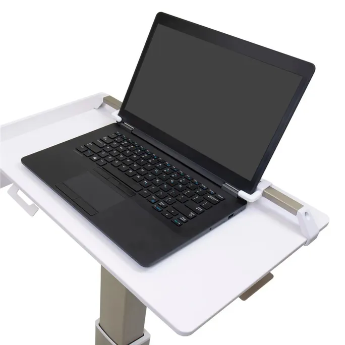 • Inklusive montiertem Wagen, vier Doppellaufrollen, Laptop-Sicherheitshalterung, Aufbewahrungsbehälter, Ablagefach