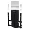 Mit dieser Halterung können Sie Ihren Fernsehapparat oder Ihr großes Display mühelos um bis zu 40 cm anheben und absenken und um bis zu 10° neigen, um einen störenden Blendeffekt zu verhindern. Dieses revolutionäre Design bietet eine beispiellose Höhenverstellbarkeit in einem extrem flachen Modul. Für das Verschieben des Displays – nach unten, um es im Sitzen zu betrachten, und nach oben für ein Betrachten im Stehen – bedarf es nur einer leichten Berührung.
