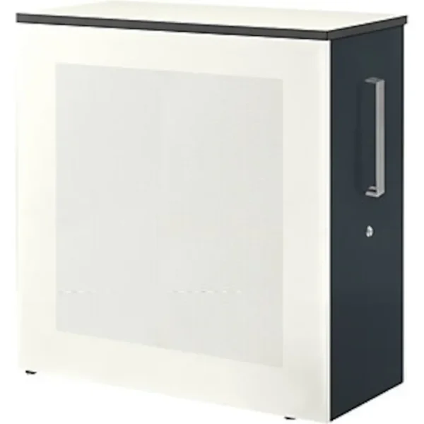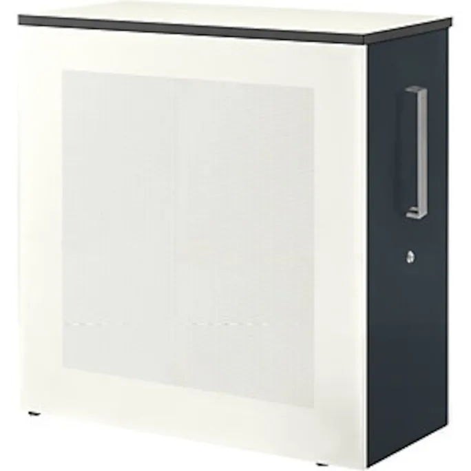 Hochauszugschrank, Thekenelement rechts stehend, Höhe 1025 mm, weiß / anthrazitgrau. Anlieferung = montiert. Höhe = 1025 mm. Breite = 432 mm. Tiefe = 800 mm. Utensilienschub = ja. Auszug Materialschub = Vollauszug. Innenmaße Materialschub HxBxT = 882x368x698 mm. Produkttyp = Standcontainer. Material = Stahlblech, pulverbeschichtet. Korpusfarbe = reinweiß RAL 9010. Schubladenmaterial = Stahl. Schubladenfarbe = anthrazitgrau RAL 7016. Schubladentraglast = 40 kg. Schubladenführung = mit kugelgelagerten Teleskopauszügen. Eigenschaft = verschließbar. Plattenstärke = 25 mm. Schrank, Trennwand und Rollcontainer in einem. Akustisch wirksame Seitenwände. Auszug auf hochwertiger Schubladenführung mit Selbsteinzug und Dämpfung. Inkl. 2 Fachböden, 1 Materialschale und separat abschließbarem Privatfach. Wahlweise 2,5 oder 3 Ordnerhöhen. Zusätzlichen Stauraum schafft der Hochauszugschrank mit stabilem, geschweißtem Stahlkorpus. Akustisch wirksam. Tiefe 800 mm. Hochwertige Pulverbeschichtung. Mit Bügelgriff und 25 mm starker Abdeckplatte aus Kunststoffschichtstoff. Thekenelement rechts stehend, Auszug nach links offen, Front Stahl mit Bügelgriff, Schublade serienmäßig mit Selbsteinzug und Dämpfung. Montierte Anlieferung. Praktische Kleinschublade auf Anfrage.