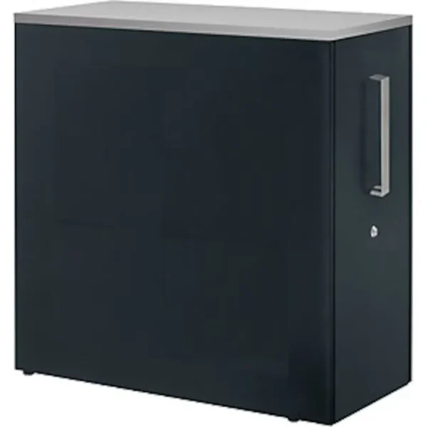 Hochauszugschrank, Thekenelement rechts stehend, Höhe 1025 mm, anthrazitgrau. Anlieferung = montiert. Höhe = 1025 mm. Breite = 432 mm. Tiefe = 800 mm. Utensilienschub = ja. Auszug Materialschub = Vollauszug. Innenmaße Materialschub HxBxT = 882x368x698 mm. Produkttyp = Standcontainer. Material = Stahlblech, pulverbeschichtet. Korpusfarbe = anthrazitgrau RAL 7016. Schubladenmaterial = Stahl. Schubladenfarbe = anthrazitgrau RAL 7016. Schubladentraglast = 40 kg. Schubladenführung = mit kugelgelagerten Teleskopauszügen. Eigenschaft = verschließbar. Plattenstärke = 25 mm. Schrank, Trennwand und Rollcontainer in einem. Akustisch wirksame Seitenwände. Auszug auf hochwertiger Schubladenführung mit Selbsteinzug und Dämpfung. Inkl. 2 Fachböden, 1 Materialschale und separat abschließbarem Privatfach. Wahlweise 2,5 oder 3 Ordnerhöhen. Zusätzlichen Stauraum schafft der Hochauszugschrank mit stabilem, geschweißtem Stahlkorpus. Akustisch wirksam. Tiefe 800 mm. Hochwertige Pulverbeschichtung. Mit Bügelgriff und 25 mm starker Abdeckplatte aus Kunststoffschichtstoff. Thekenelement rechts stehend, Auszug nach links offen, Front Stahl mit Bügelgriff, Schublade serienmäßig mit Selbsteinzug und Dämpfung. Montierte Anlieferung. Praktische Kleinschublade auf Anfrage.