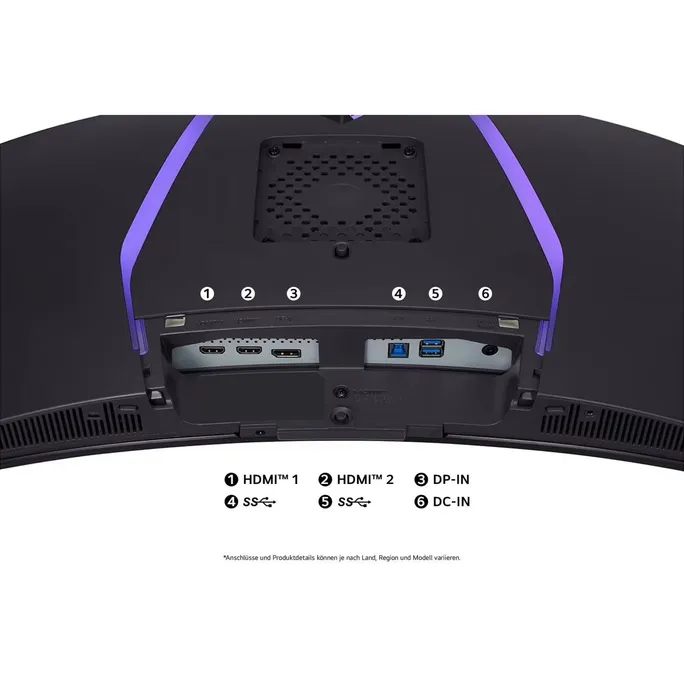Verbessern Sie Ihr Spielerlebnis mit einer neuen Hexagon-Beleuchtung und einem nahezu randlosen Design auf allen vier Seiten. Der verstellbare Standfuß unterstützt das Drehen, Neigen, die Höhe und das Schwenken, damit Sie noch bequemer spielen können.