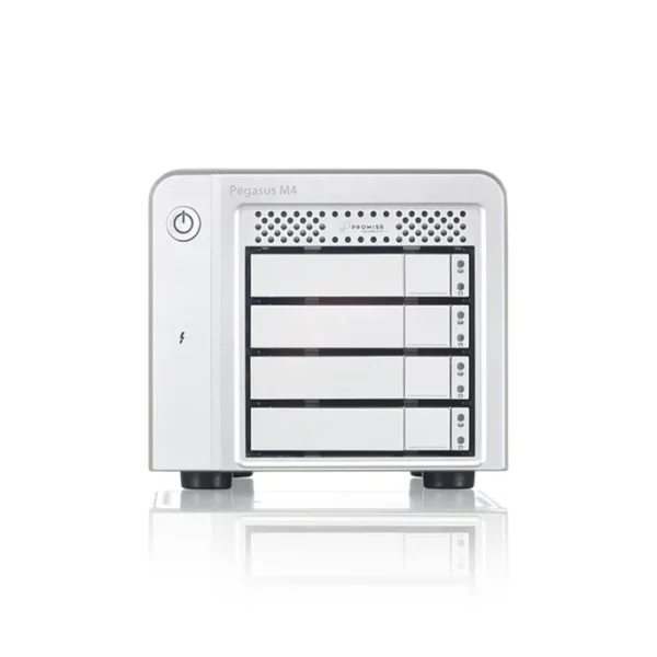 Der Pegasus M4 kombiniert die robuste PromiseRAID-Engine – bekanntfür Stabilität und hohe Leistung – mit dem hohen Thunderbolt™-Durchsatz in einem kompakten SSD-Gehäuse mit vier Einbauschächten. Der M4 eignet sich perfekt für kreative Medienprofis unterwegs.