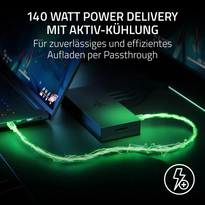 • Thunderbolt™ 5 Ready – Für Konnektivität der nächsten Generation: Erlebe Übertragungsgeschwindigkeiten von bis zu 120 Gb/Sek. beim Gaming, nutze mehrere externe Displays und verbinde eine Vielzahl von Peripheriegeräten – während du deinen Thunderbolt™ 5-Laptop mit Strom versorgst oder seinen Akku auflädst.