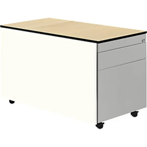 Schubladencontainer m.Rollen, 523x800, 1 Materialsch., 1 Hängereg,weiß/alu/Ahorn