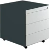 Schubladencontainer, Rollen, 570×600, Stahlpl., 3 Schubl. alu/gelbgrün