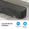 Äußerst kompakte und elegante Soundbar, die sich überall einfügt und zwischen die Füße des Fernsehers passt. Erstaunliche Verarbeitungsqualität und unaufdringliches, minimalistisches, aber sehr ansprechendes Design.
