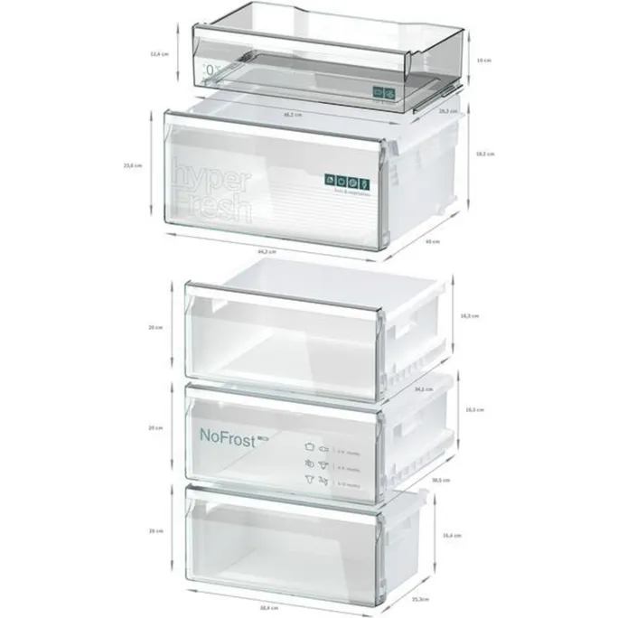 Genügend Platz für all dein Obst und Gemüse. Und eine separate Schublade mit optimierter Kaltluftzufuhr für Fisch und Fleisch, die deine Lebensmittel länger in Topform hält. Mehr Platz und ideale Lagerbedingungen in einem einzigen System.