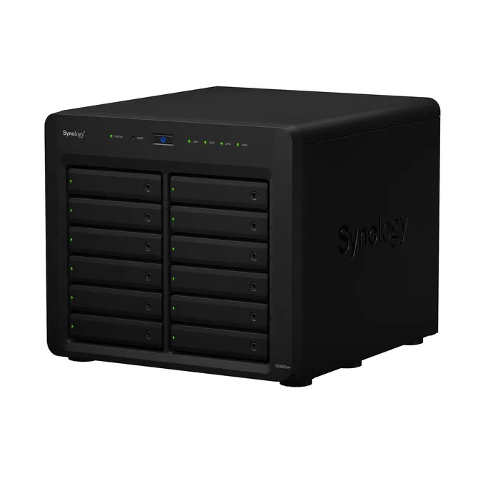 Unterstützt 12 SATA HDD/SSD-Einschübe mit 2,5″/3,5″7 und kann im laufenden Betrieb auf bis zu 36 Laufwerke mit zwei zusätzlichen Synology- Expansionseinheiten DX1222 erweitert werden