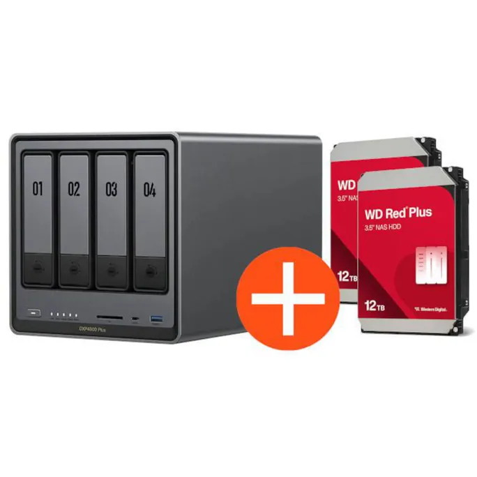 UGREEN NASync DXP4800 Plus NAS System 4-Bay 24TB inkl. 2x WD WD120EFGX NAS HDD – 12 TB